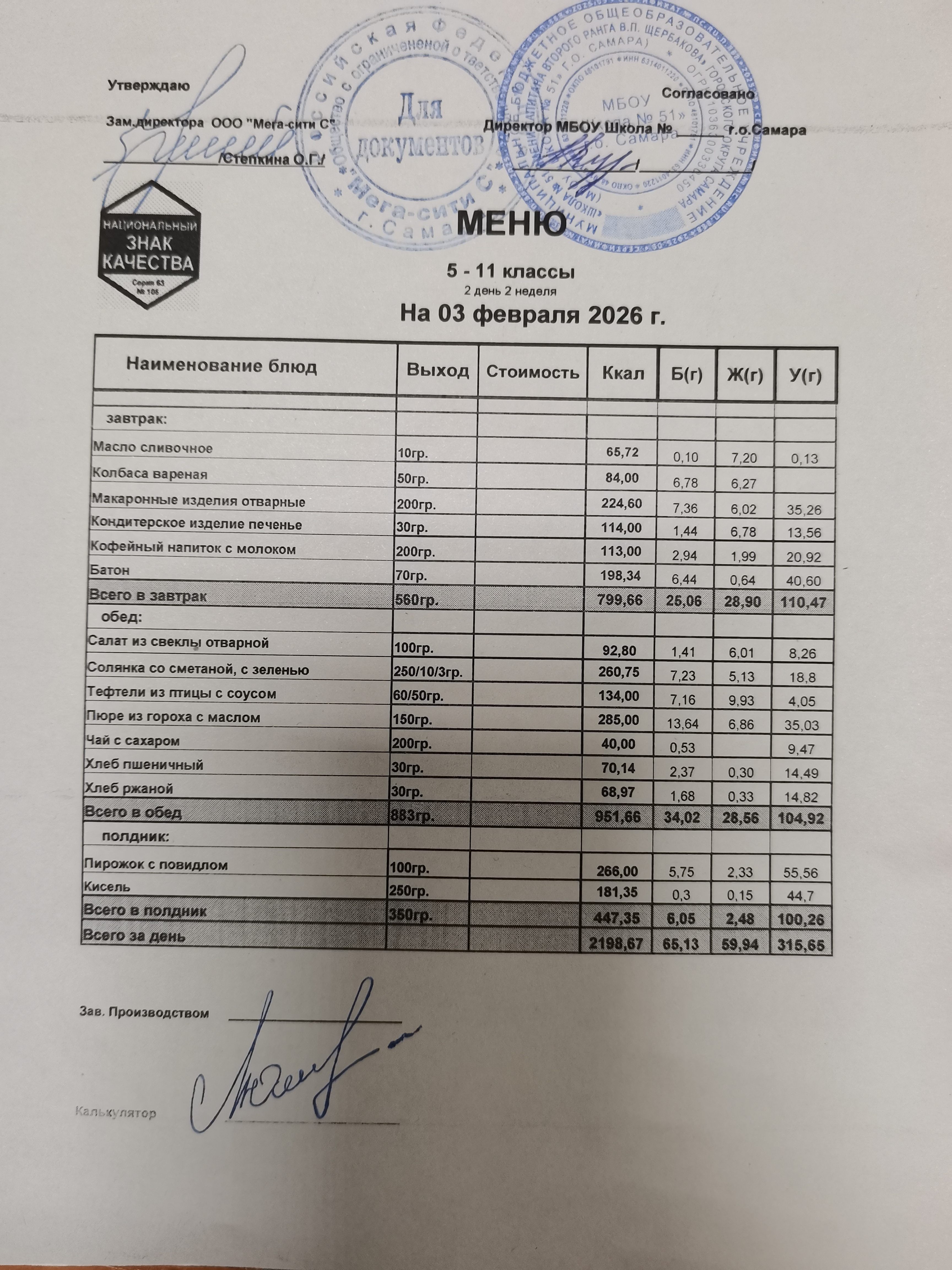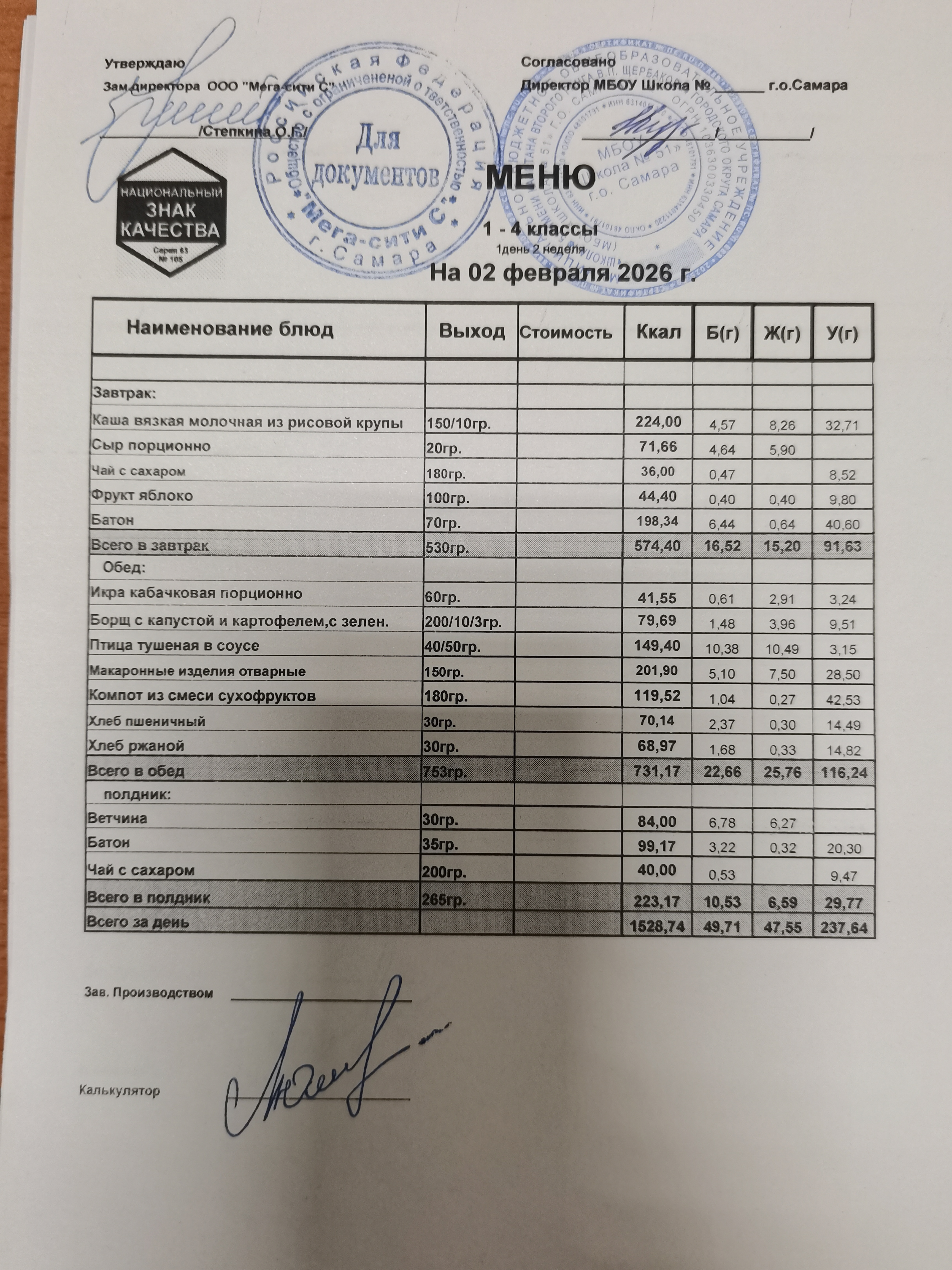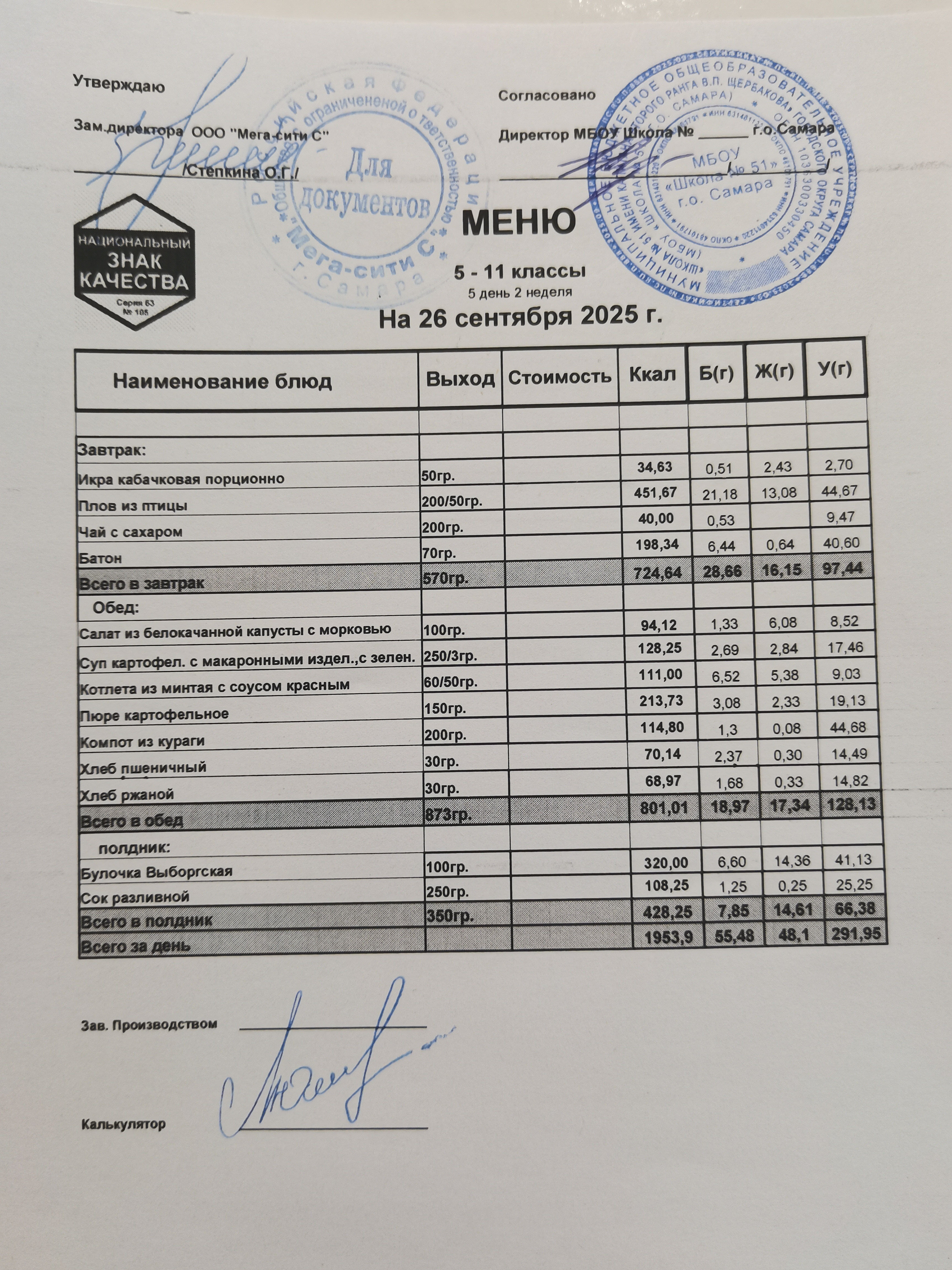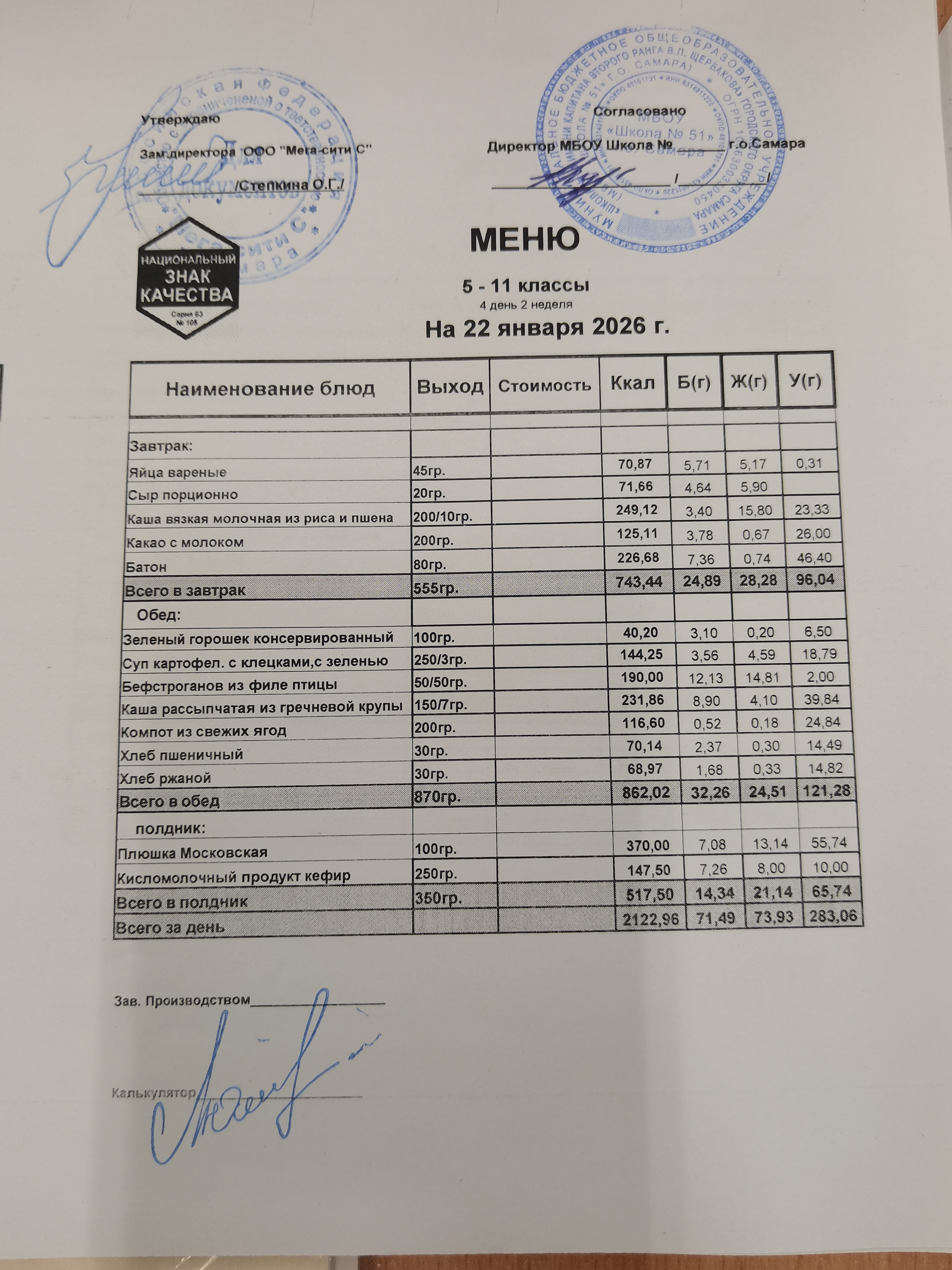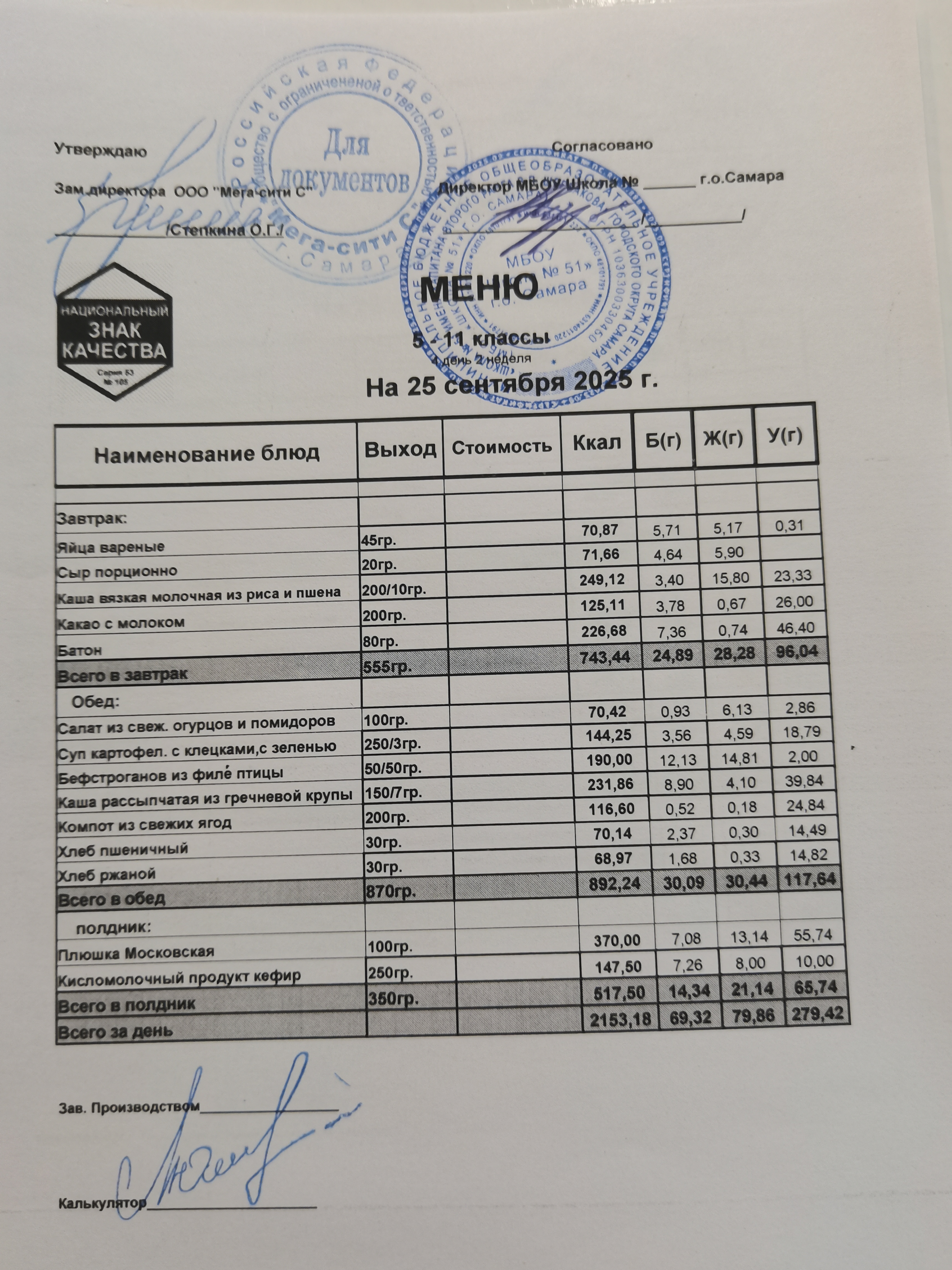 Актуальное ежедневное меню по школе