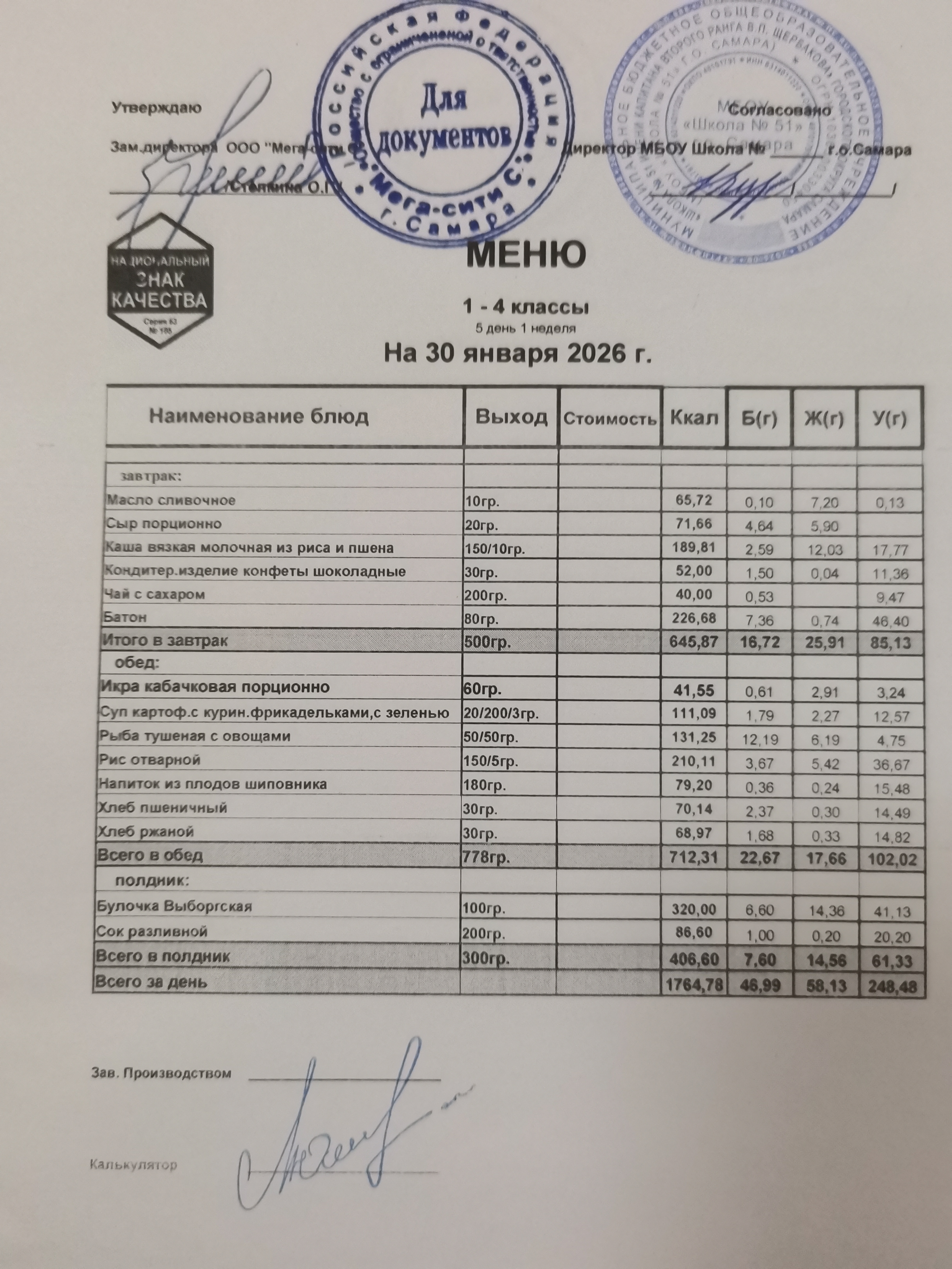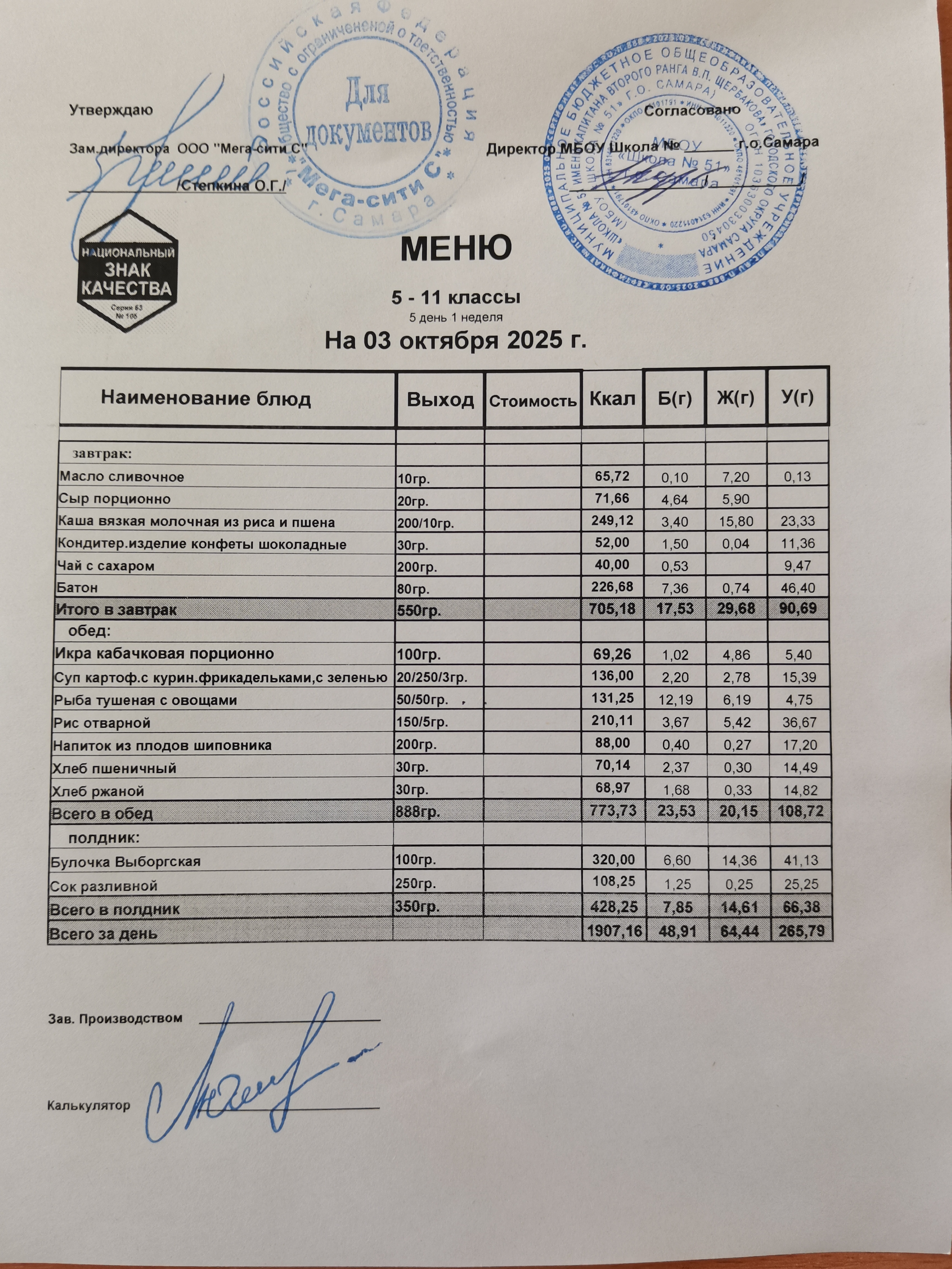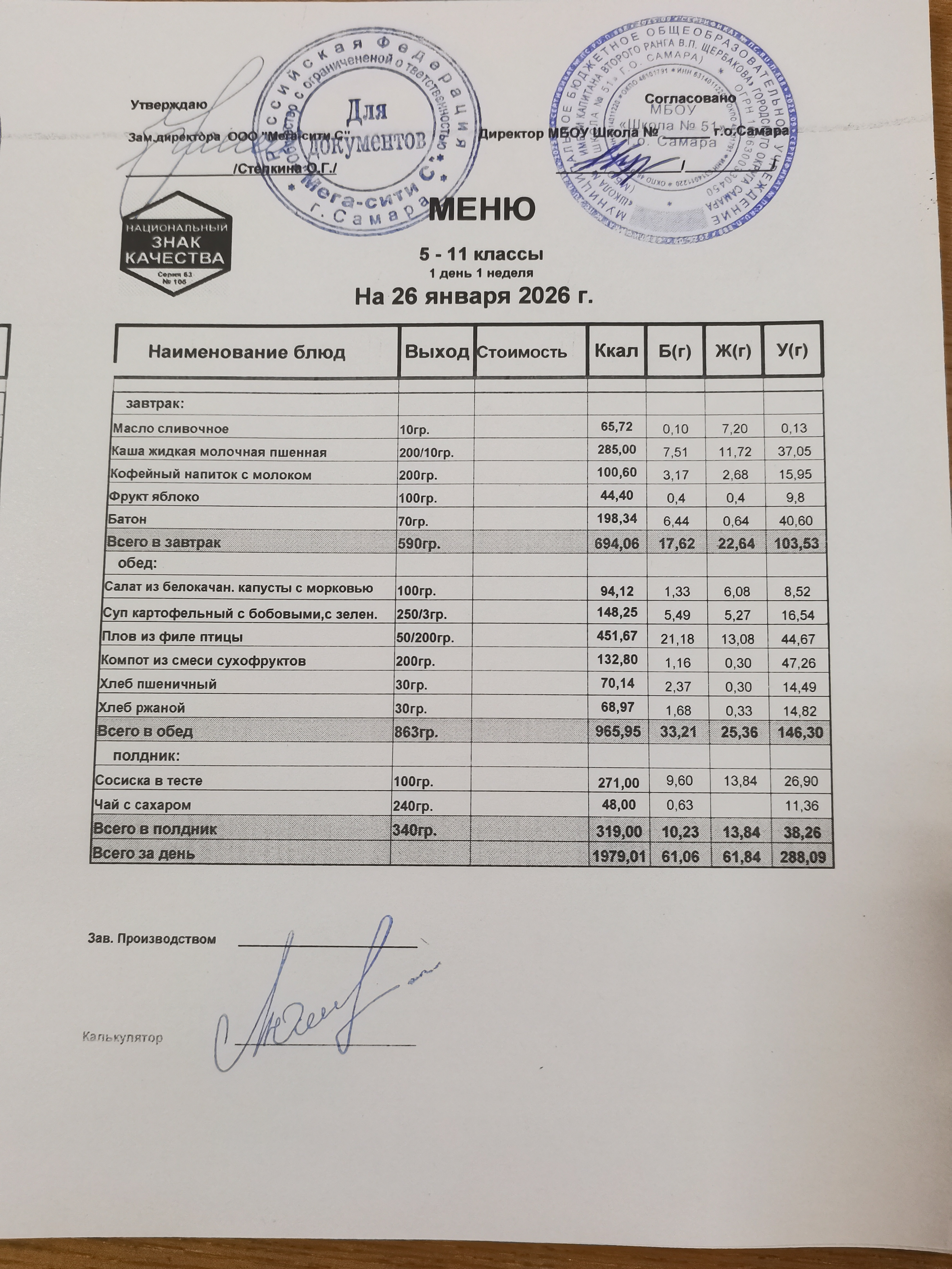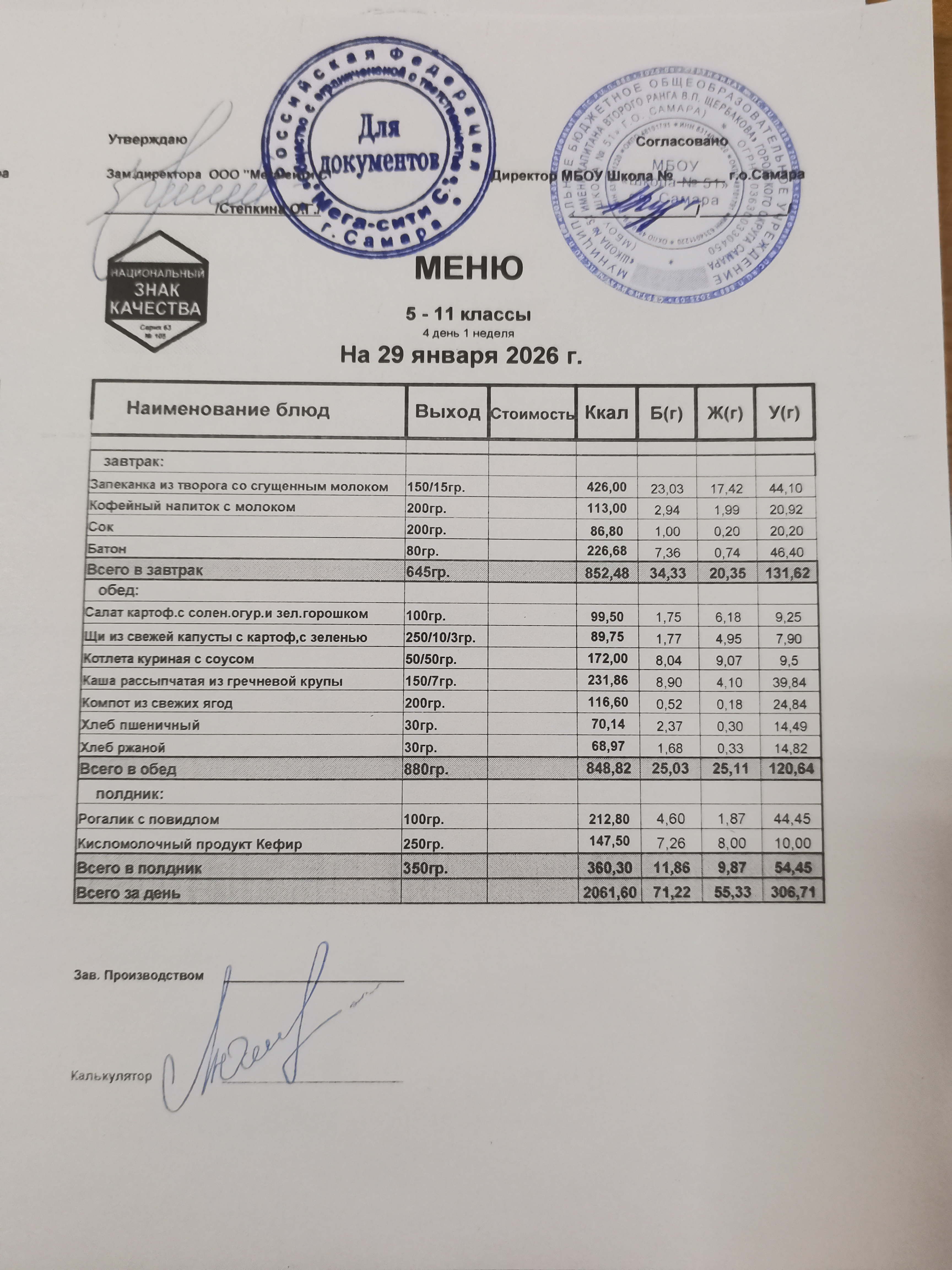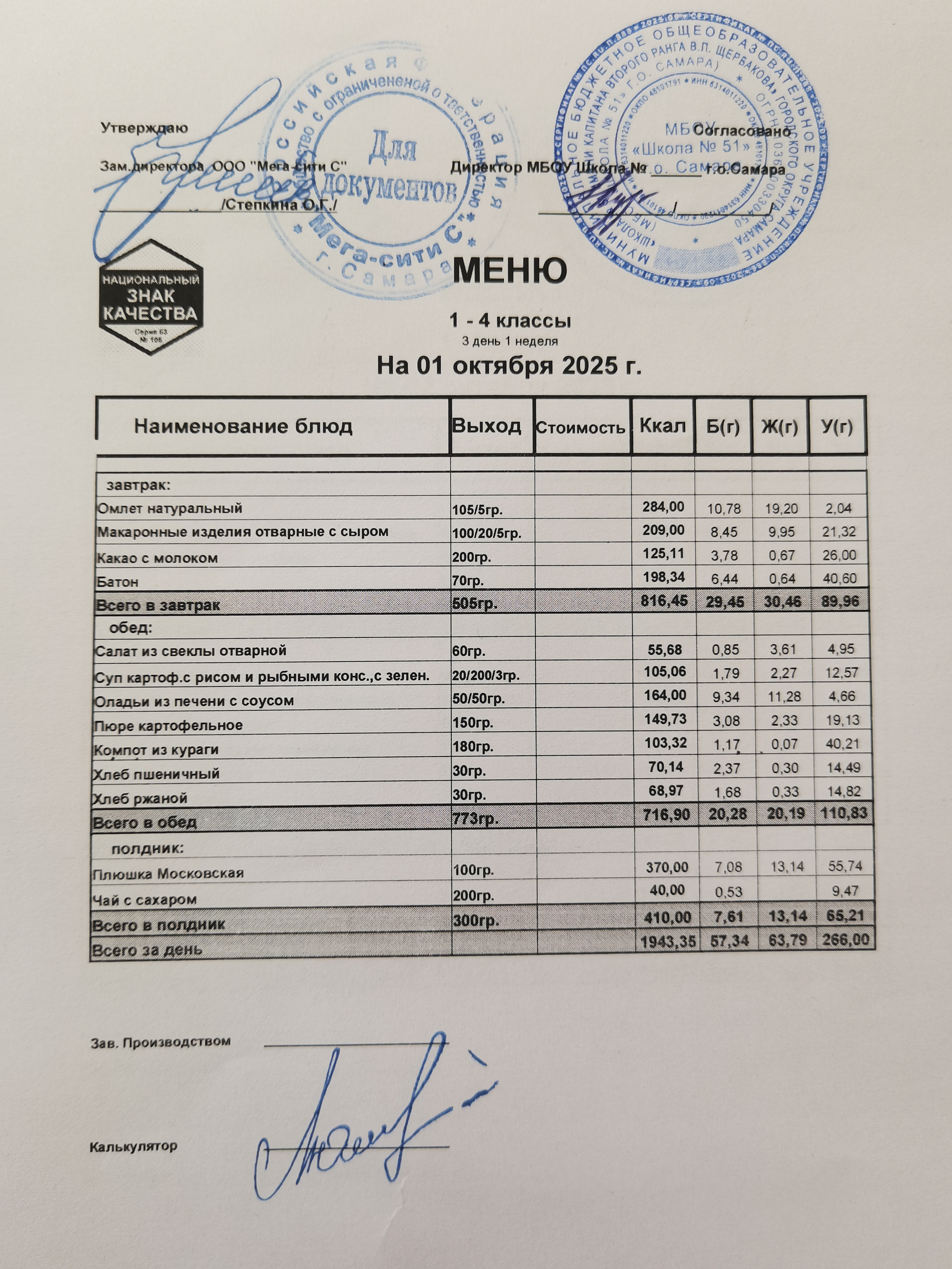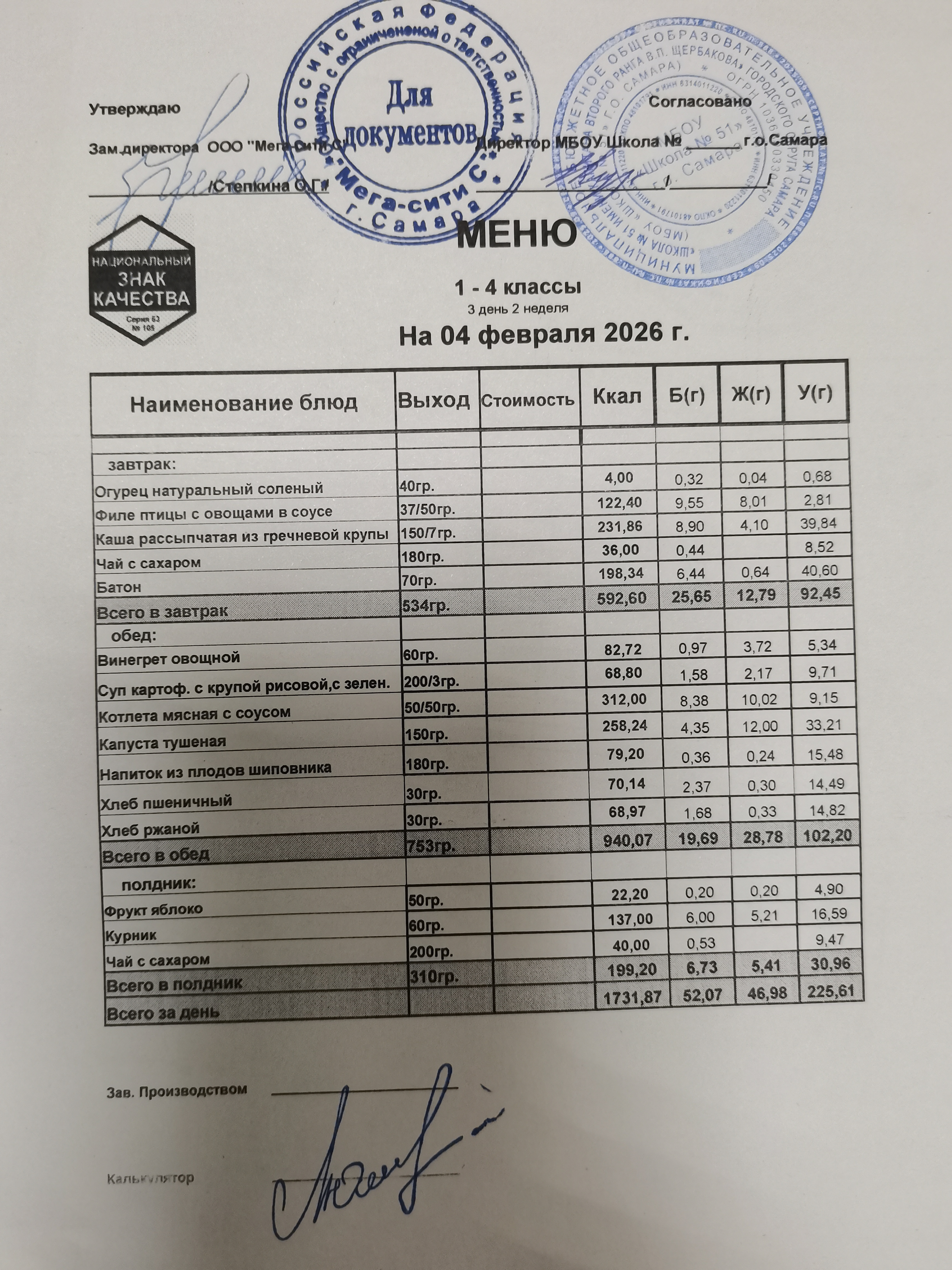 Актуальное ежедневное меню по школе