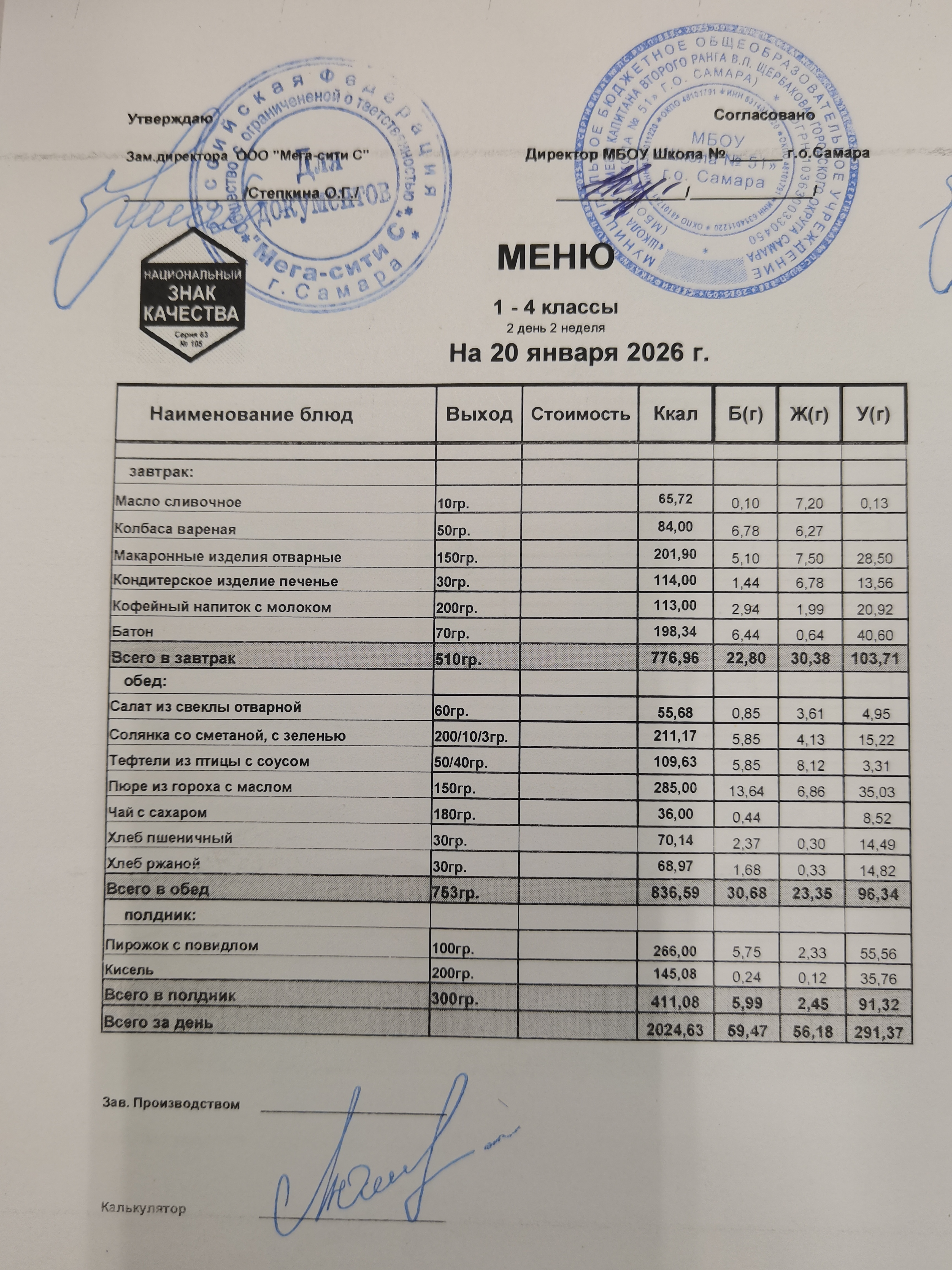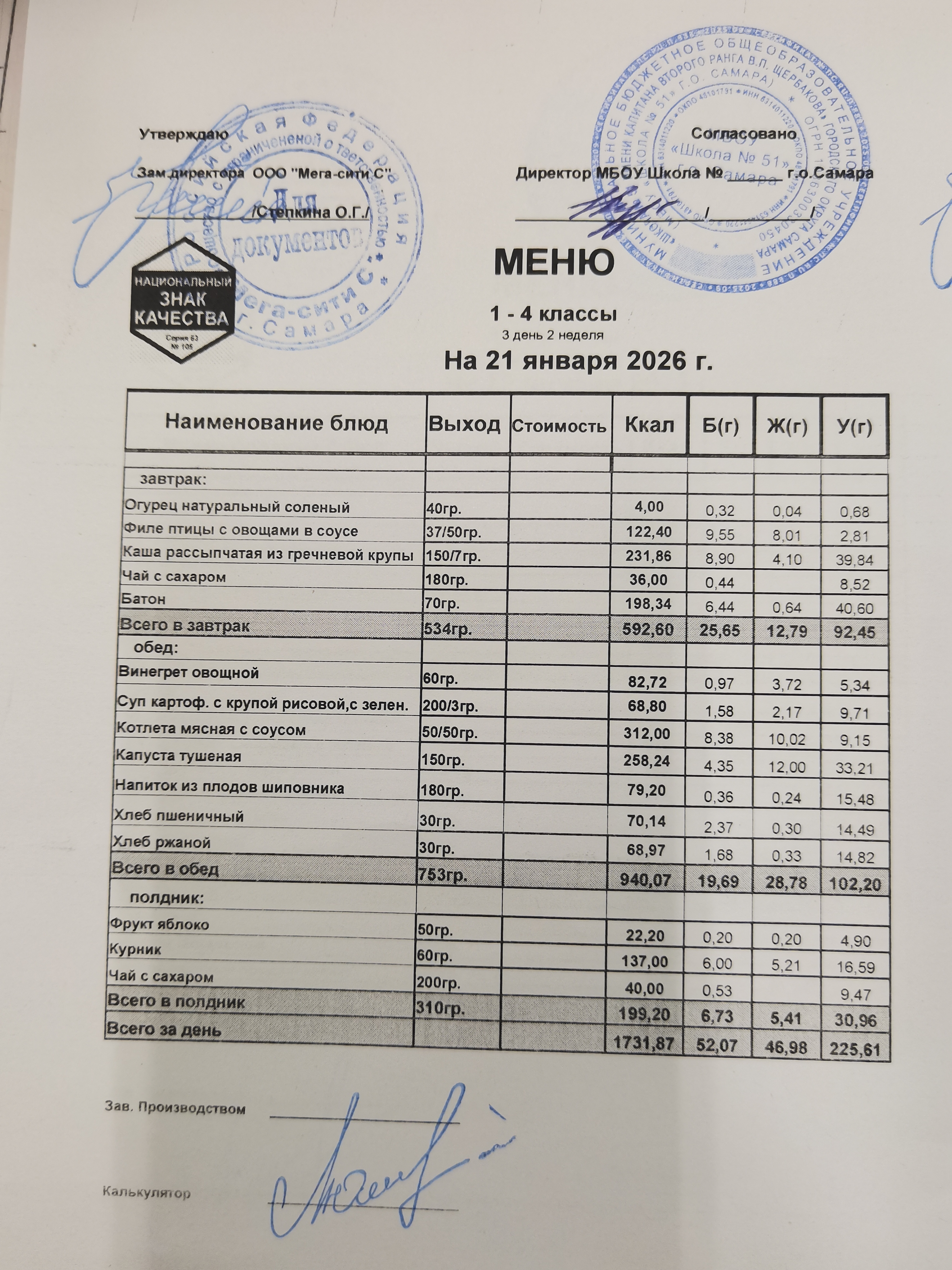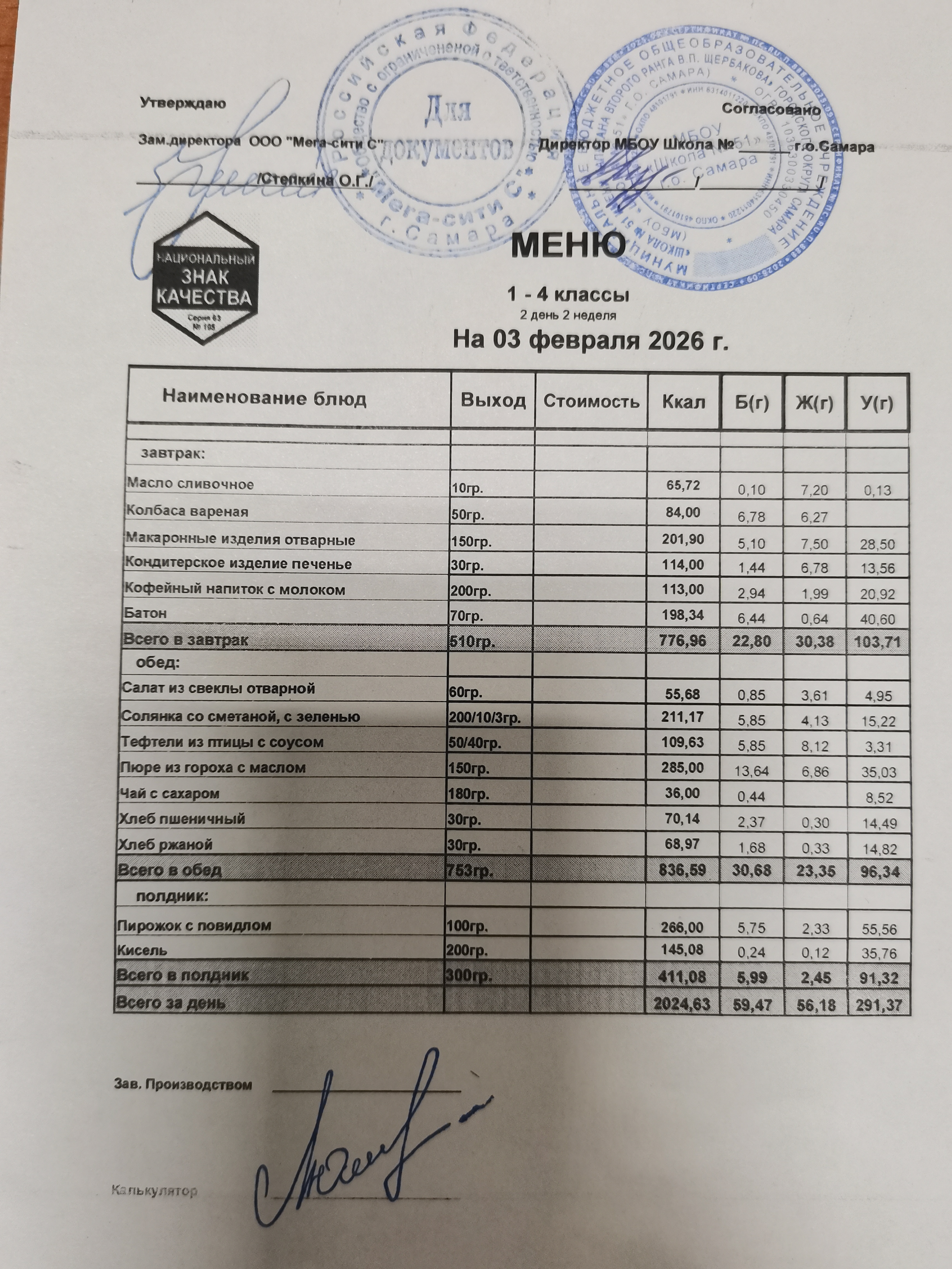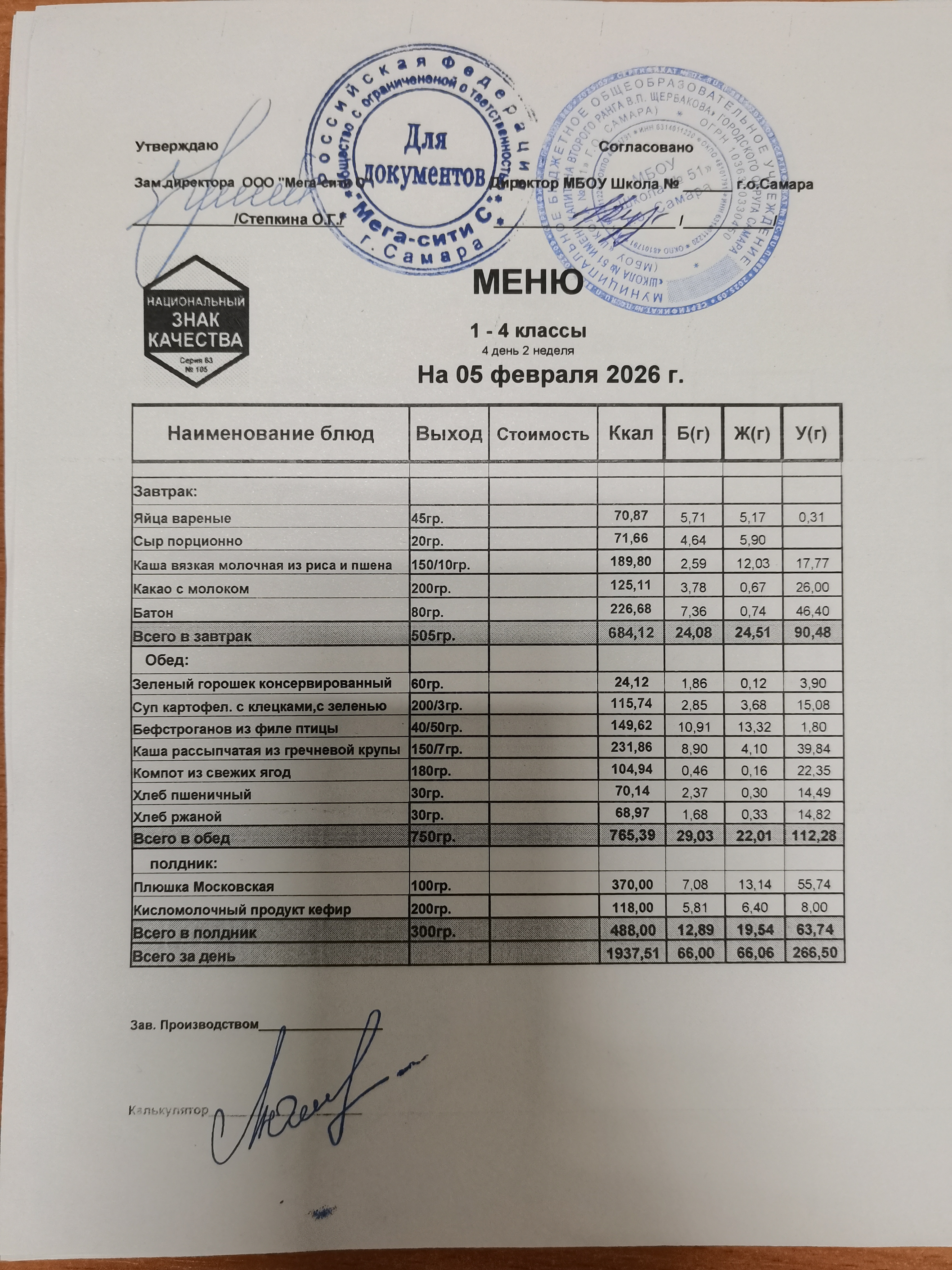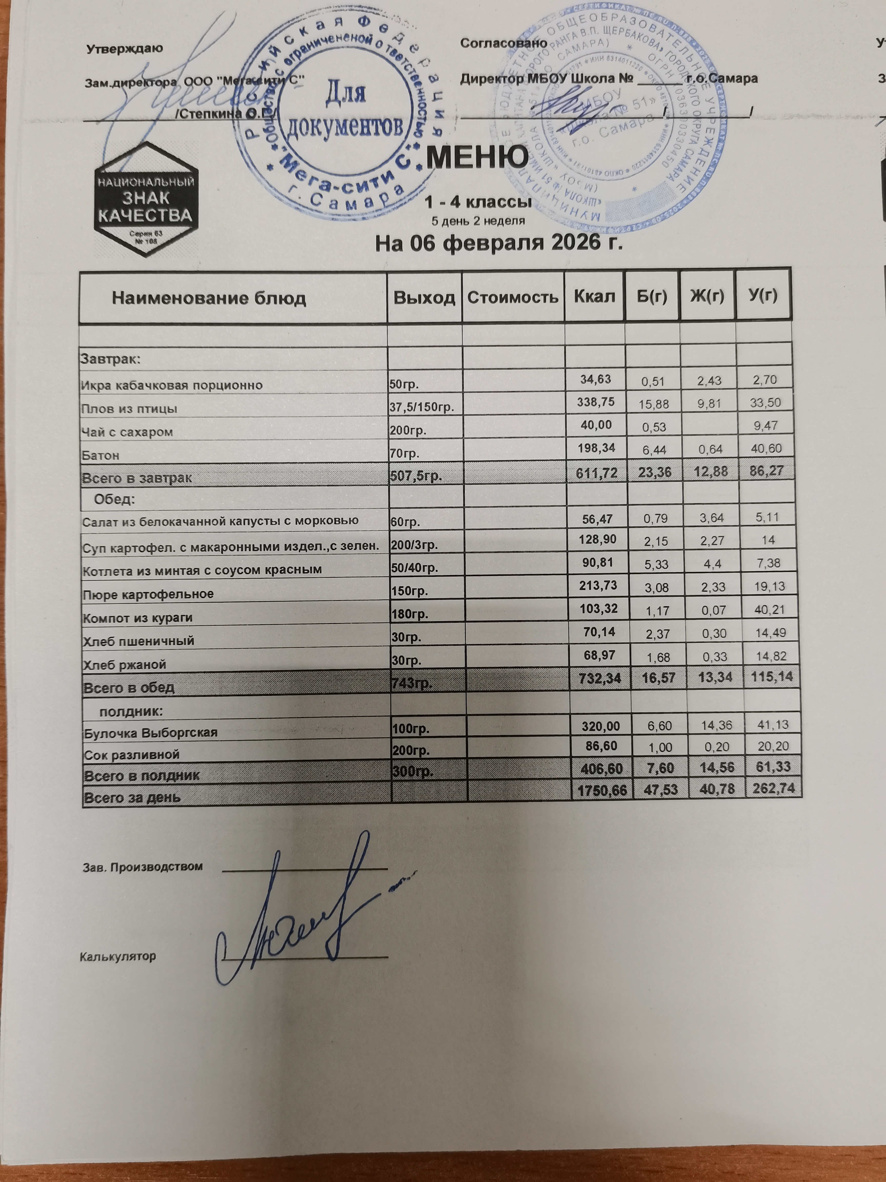Актуальное ежедневное меню по школе