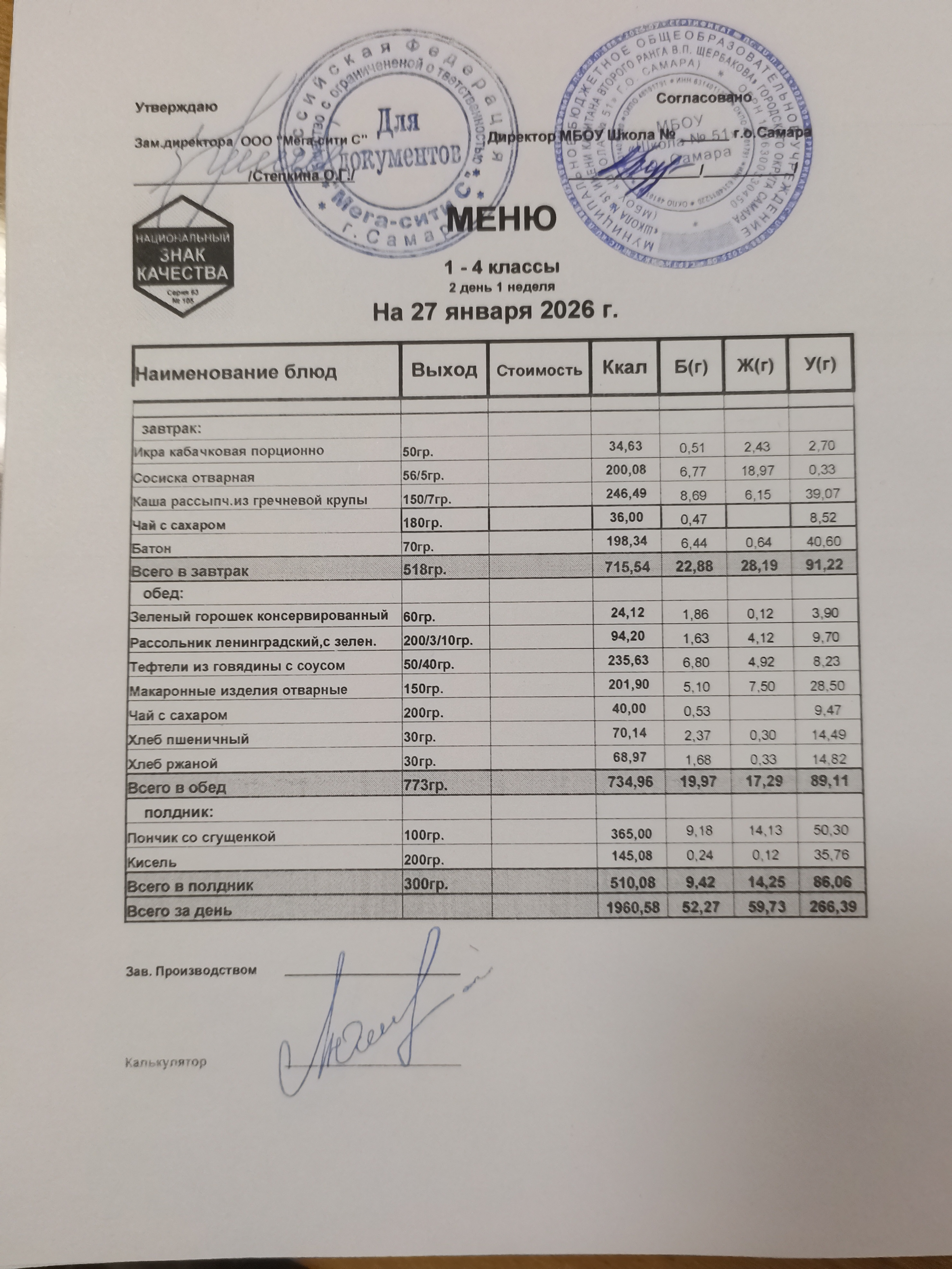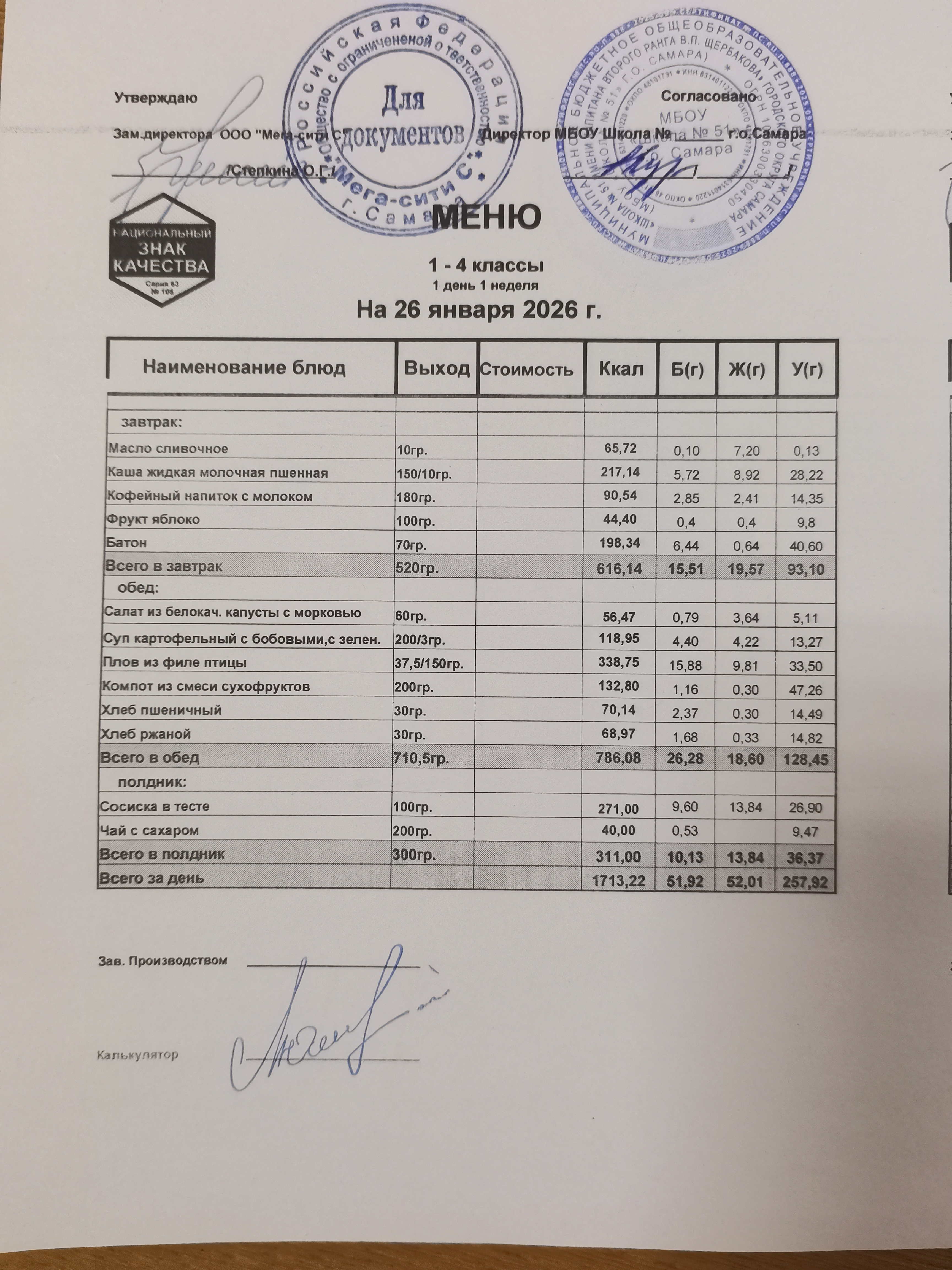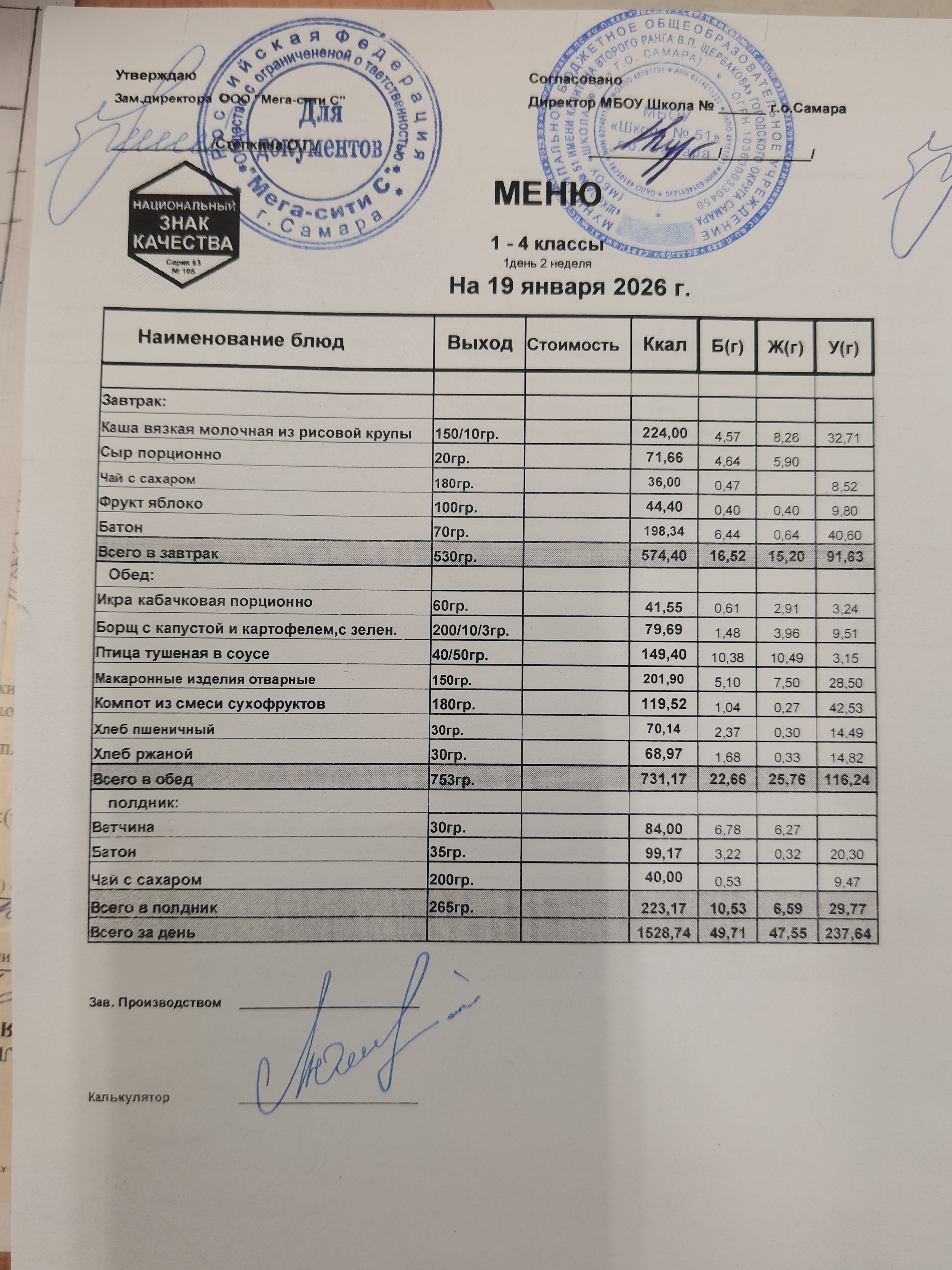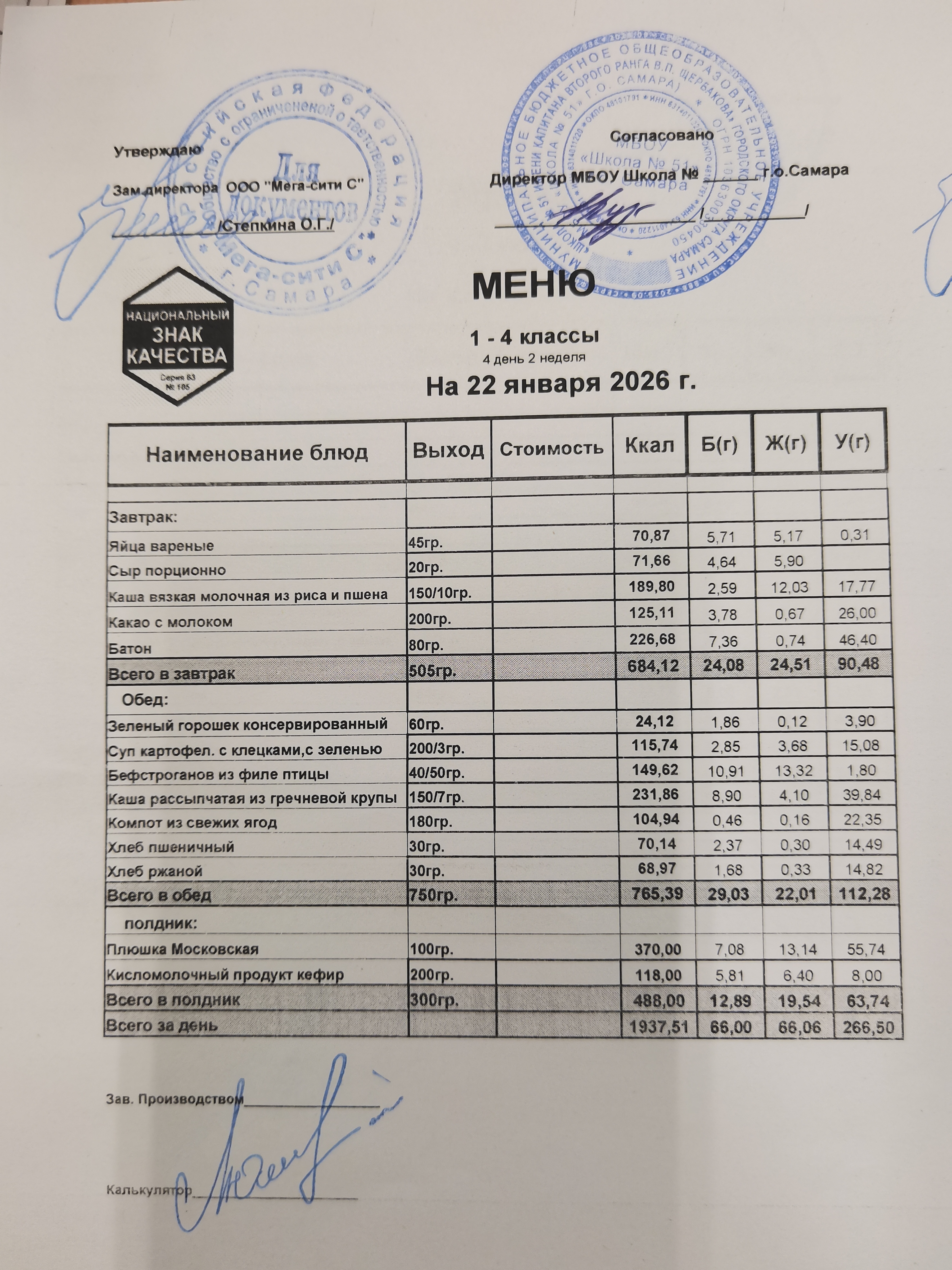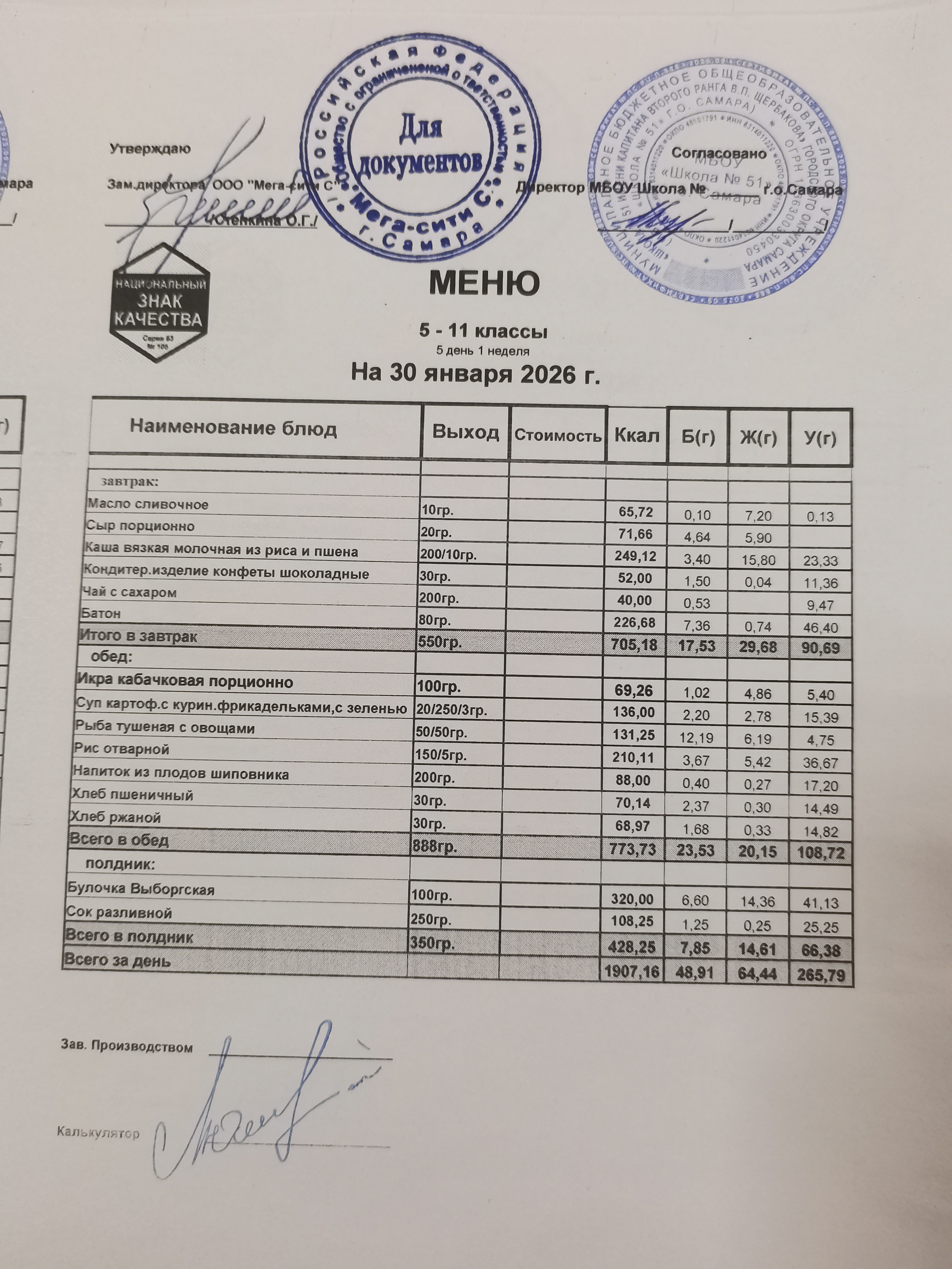 Актуальное ежедневное меню по школе