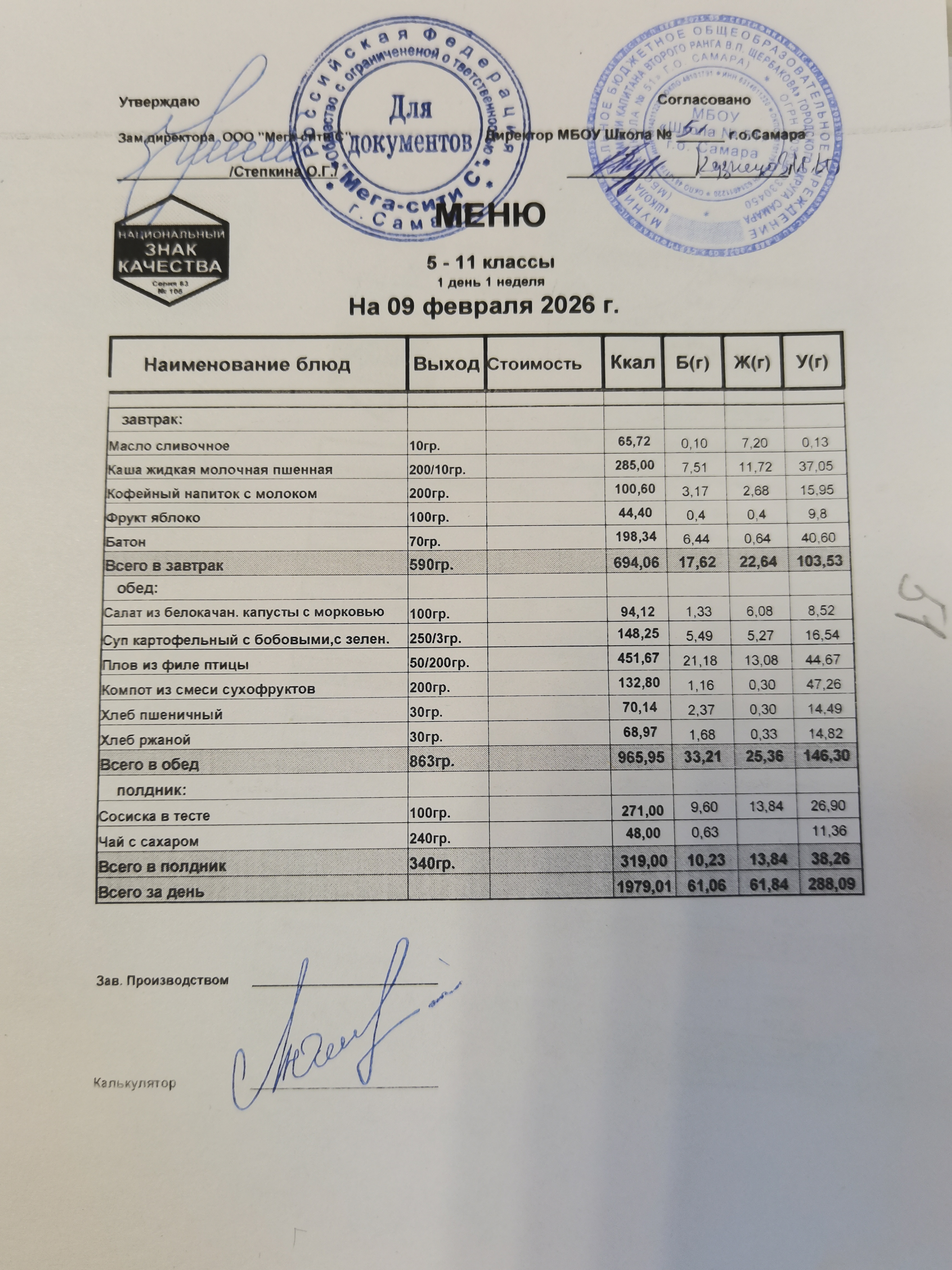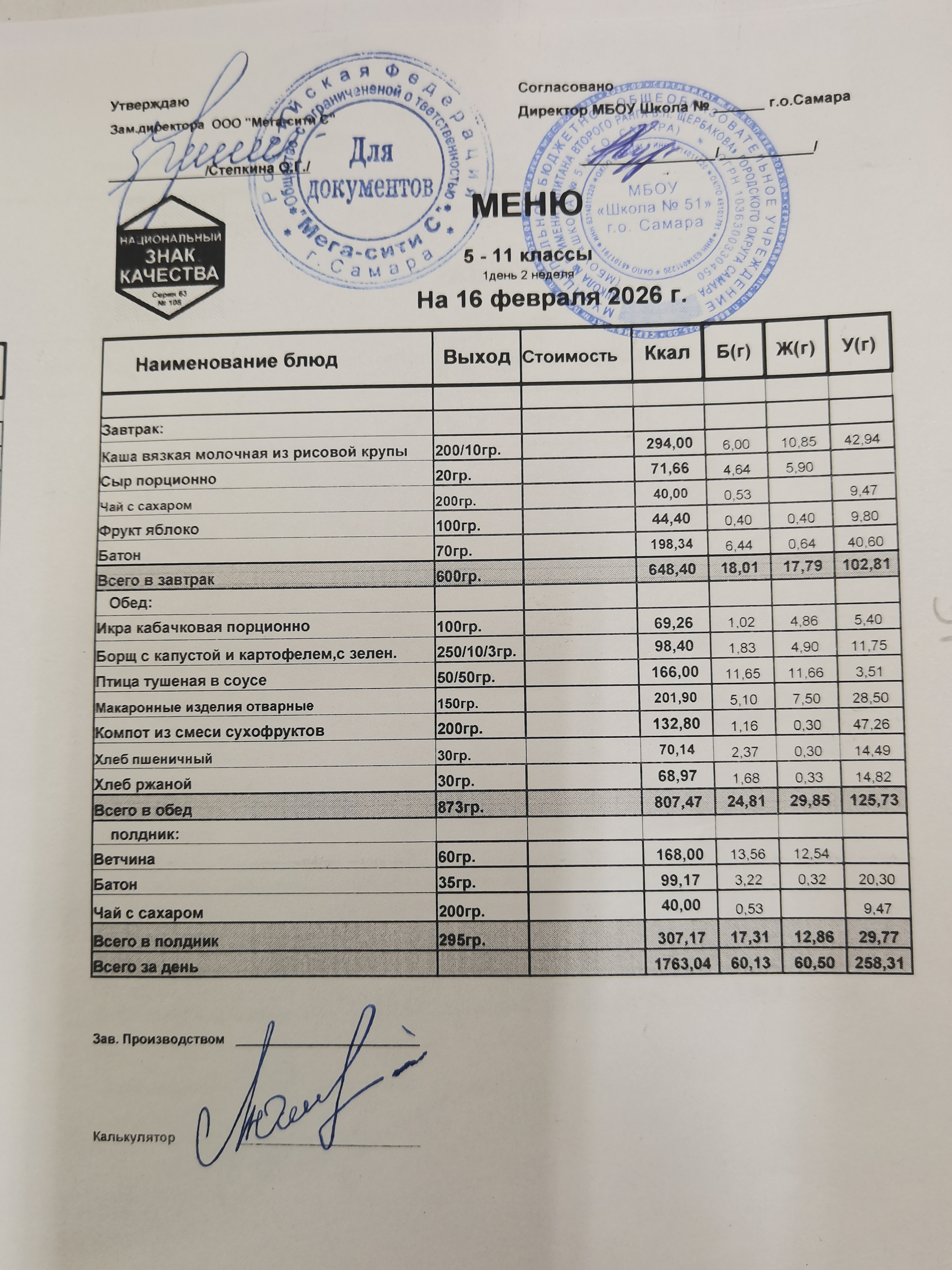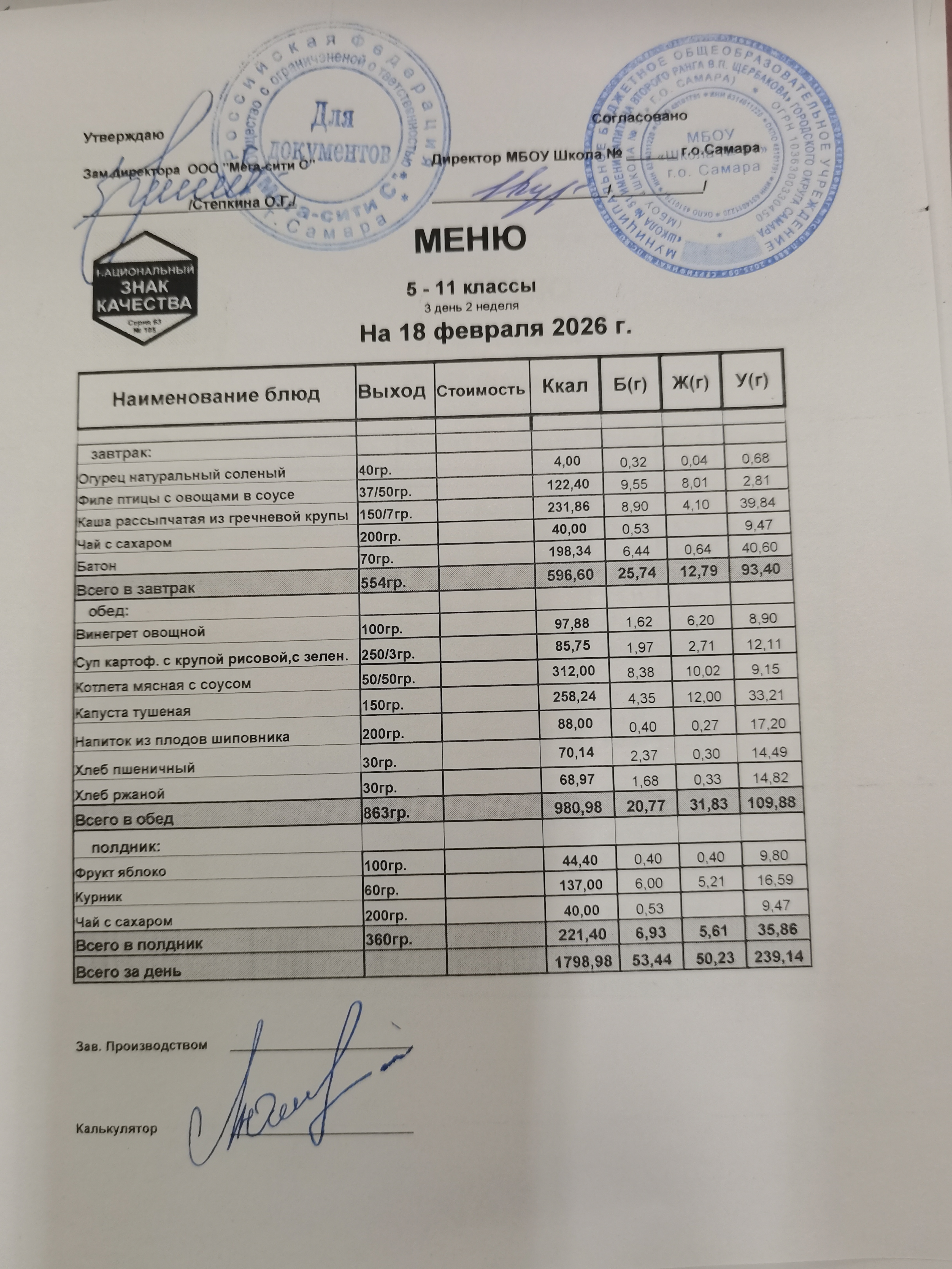 рациону питания (меню), что обеспечивает сбалансированность питания