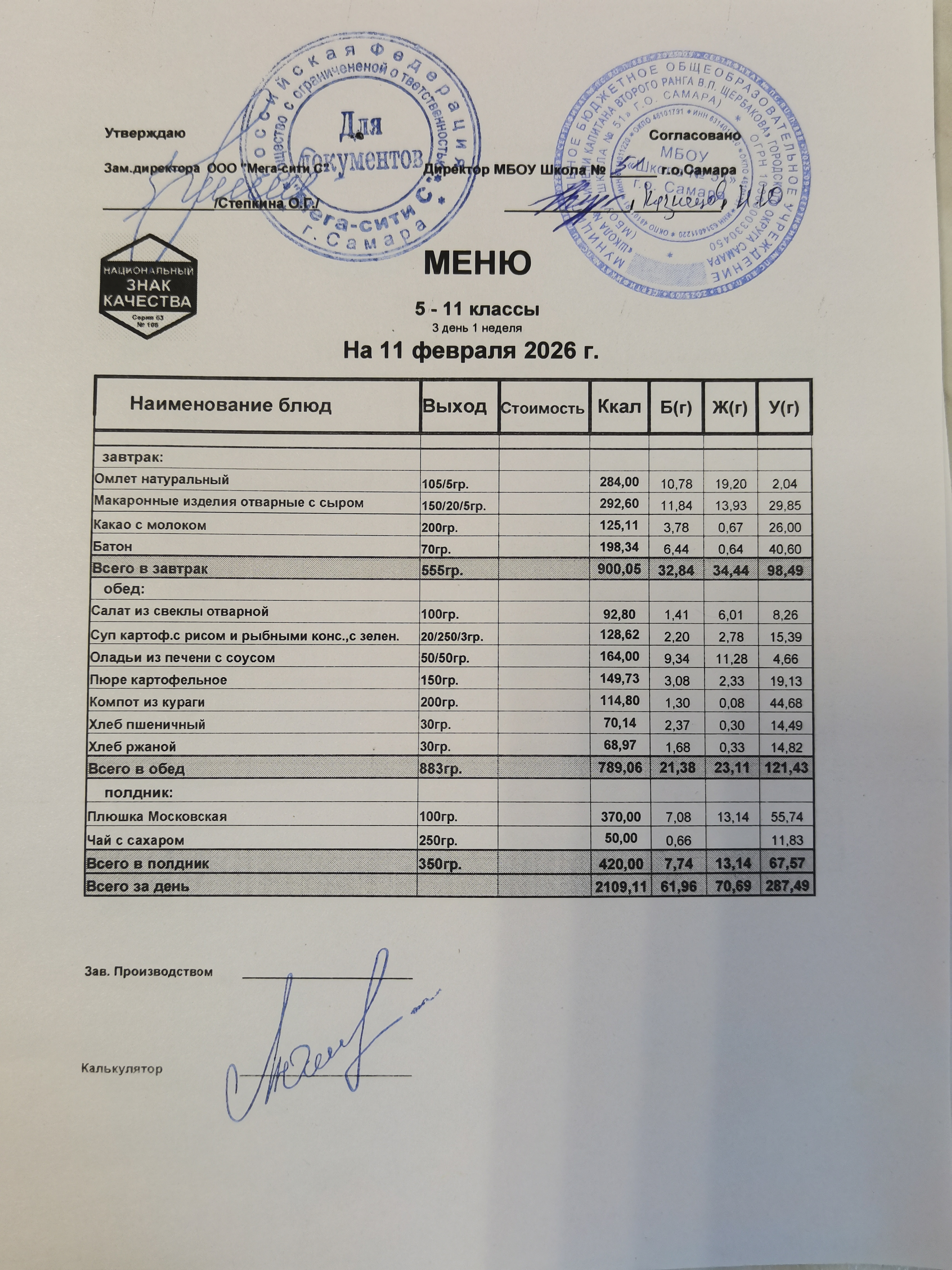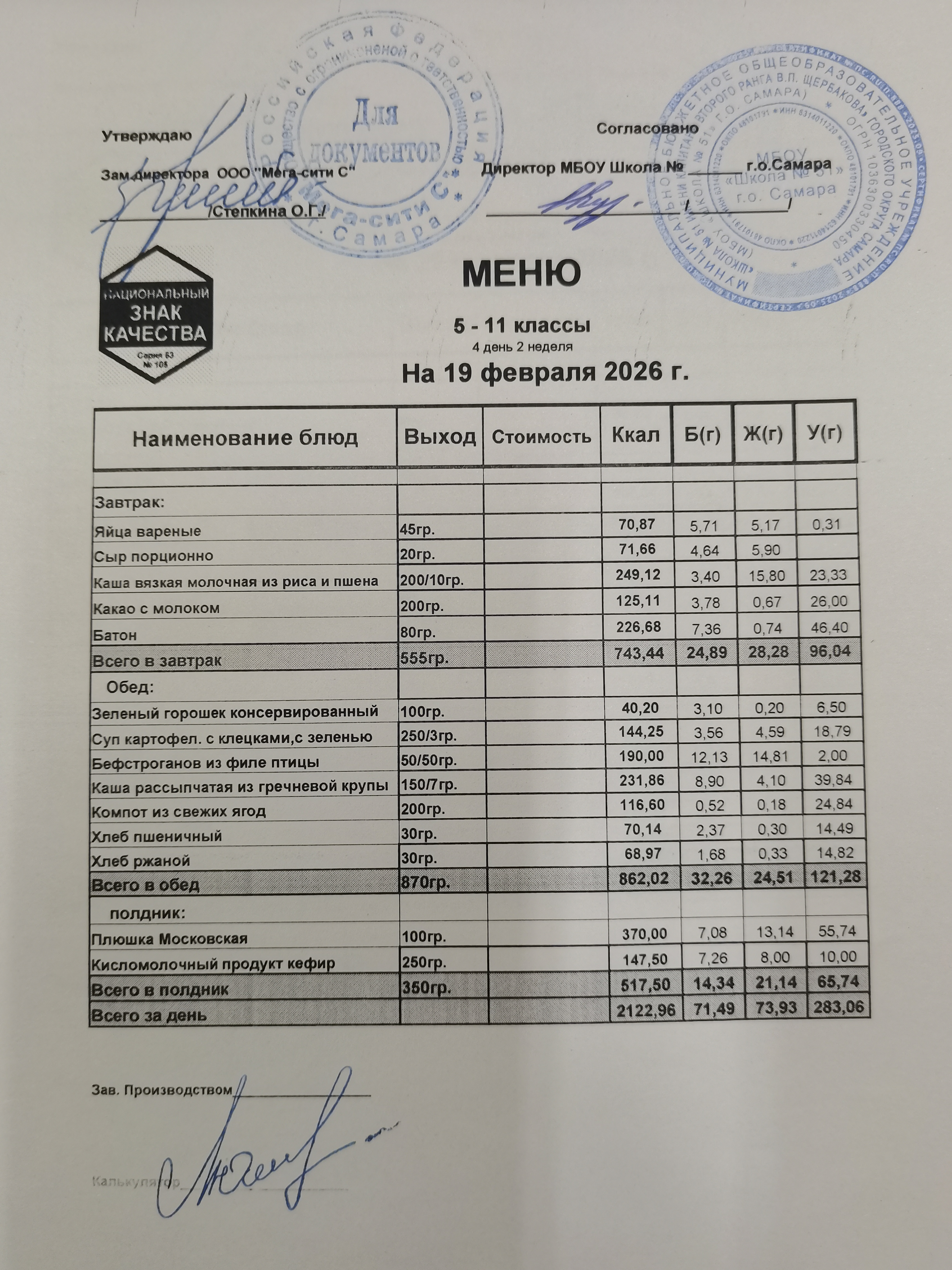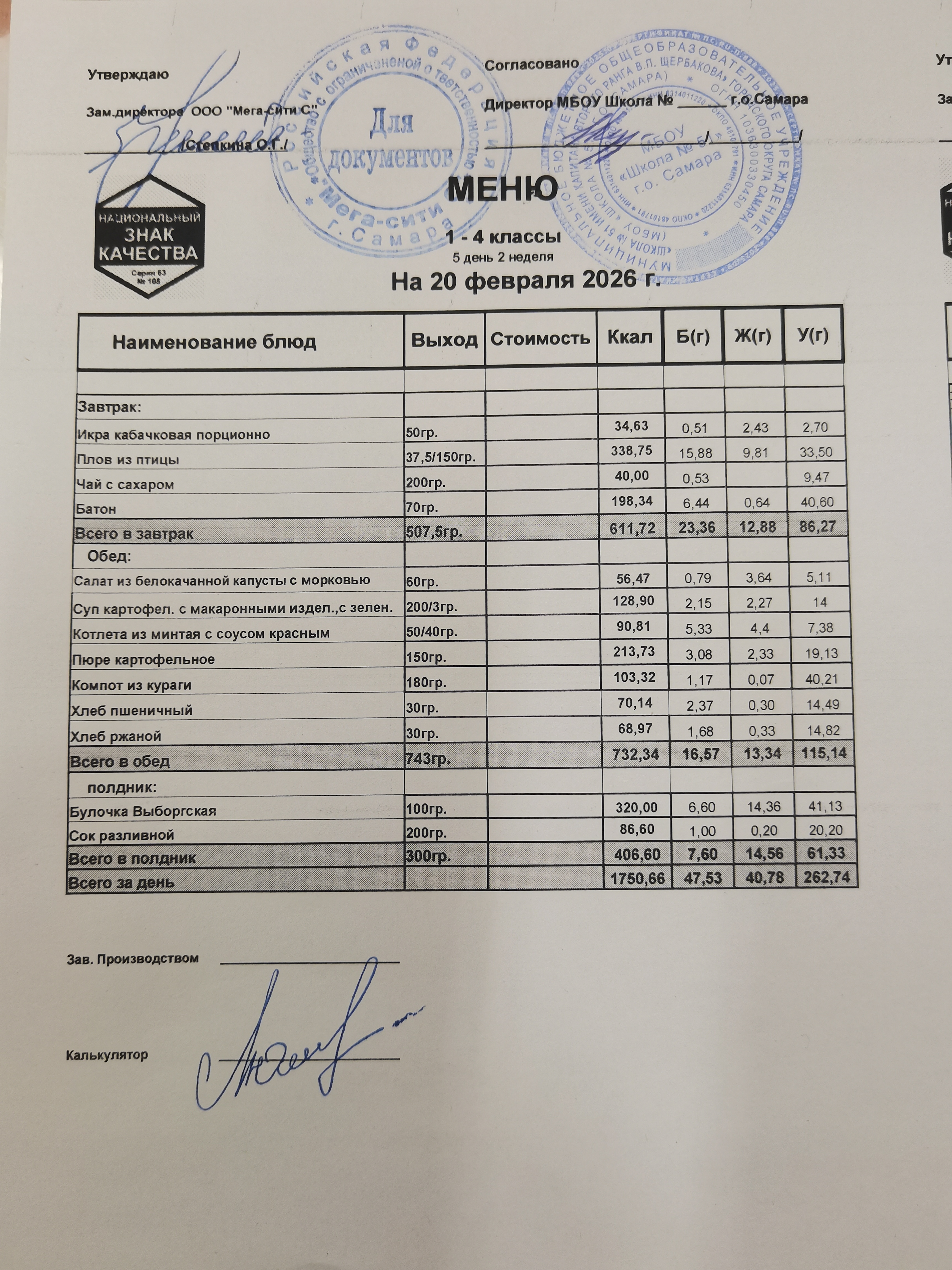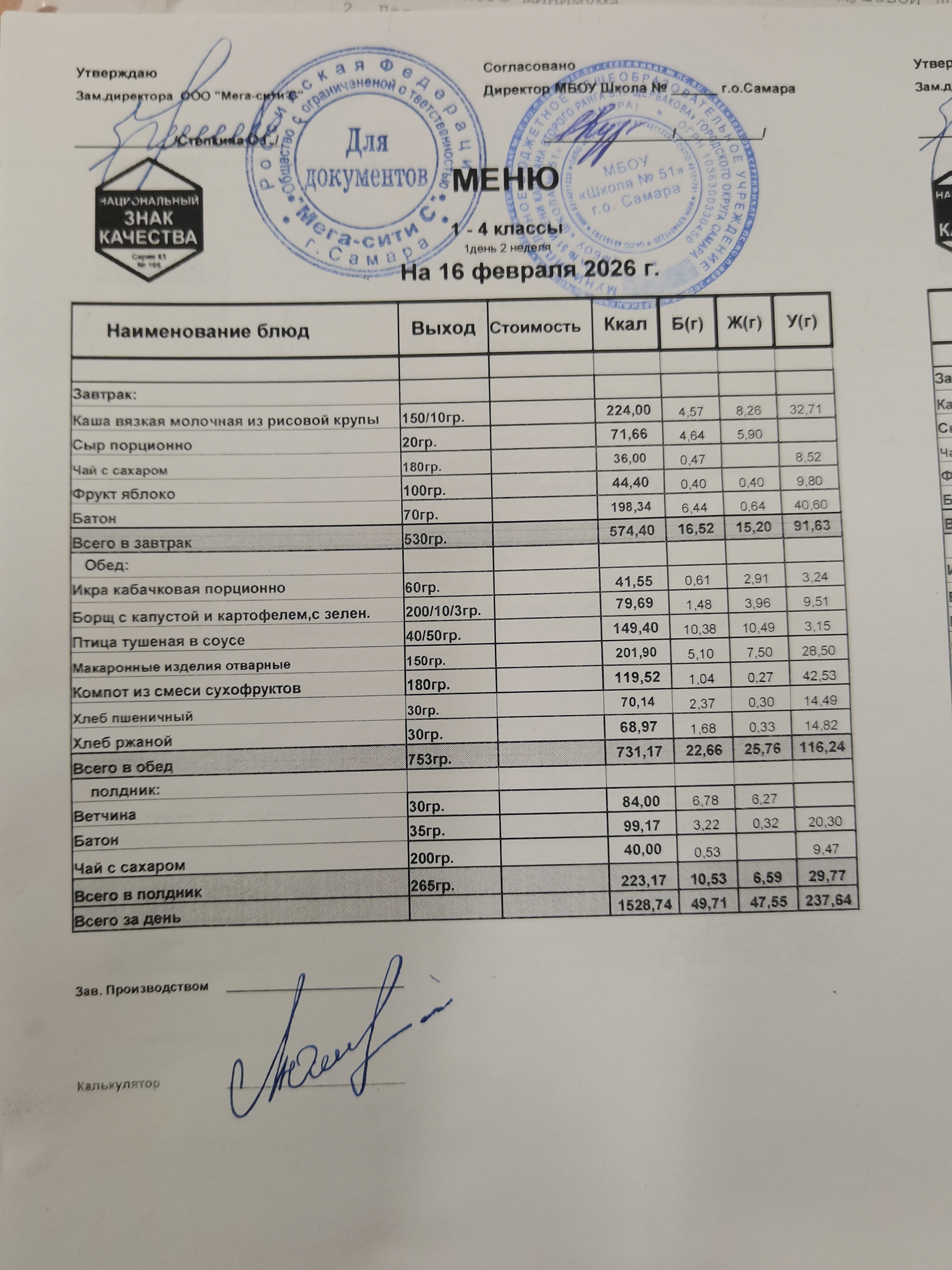рациону питания (меню), что обеспечивает сбалансированность питания