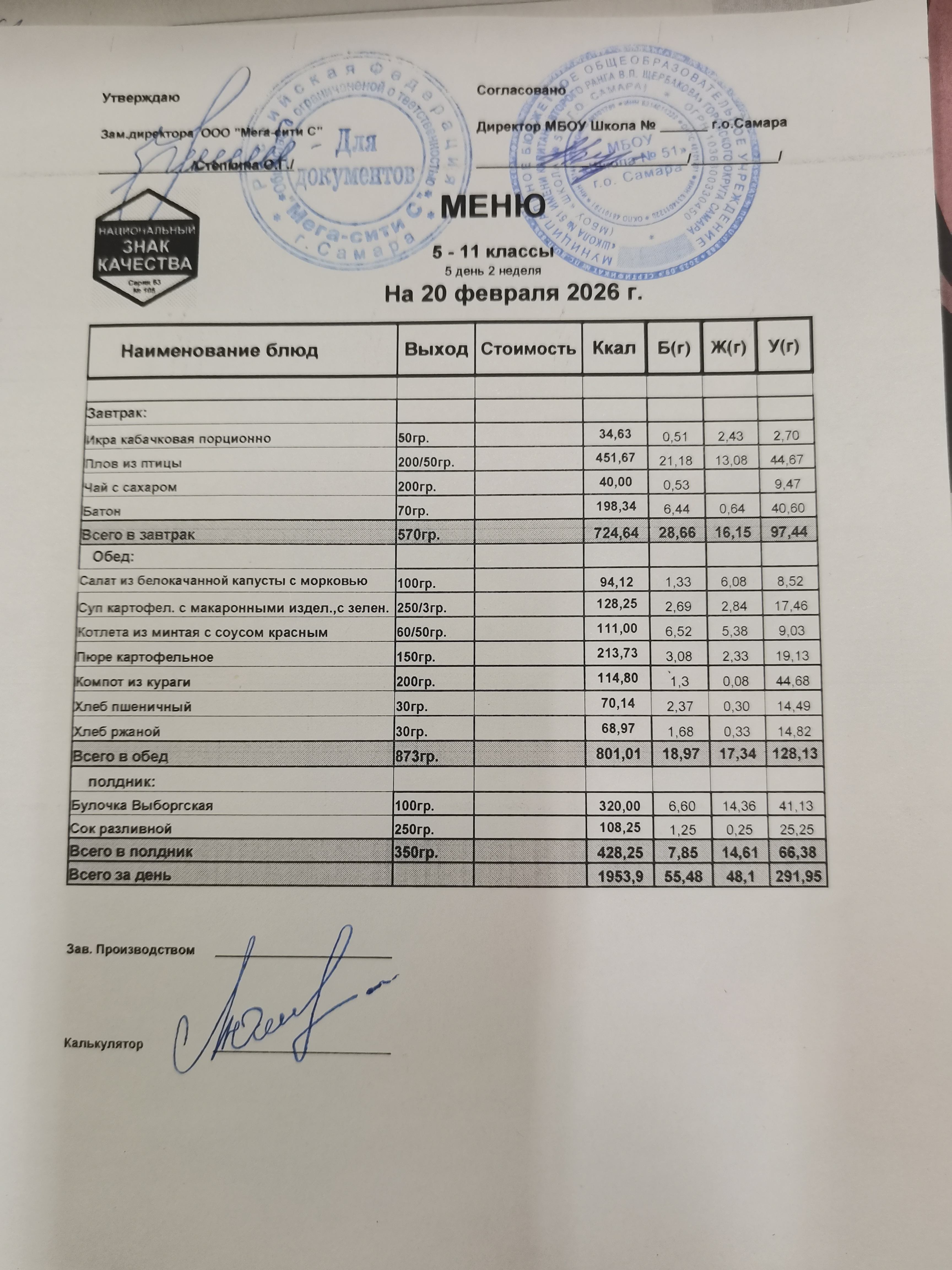 по белкам, жирам и углеводам. Готовая пища выдается только после